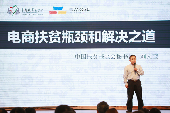 中國扶貧基金會秘書長劉文奎在大會上作“電商扶貧瓶頸和解決之道”主旨演講