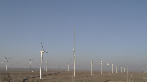 位于戈壁灘上的玉門風(fēng)電生產(chǎn)基地