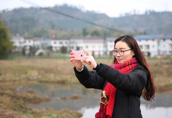 王舒用手機(jī)拍攝并通過微信、qq向朋友發(fā)送觀音村的變化。