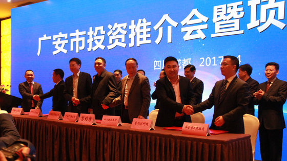 4月6日,廣安市投資推介會(huì)暨項(xiàng)目簽約儀式在成都舉行,廣安市委、市政府主要領(lǐng)導(dǎo),廣安各區(qū)縣領(lǐng)導(dǎo)與知名企業(yè)家、廣大投資者共同參會(huì)。會(huì)議現(xiàn)場(chǎng)簽約項(xiàng)目10個(gè),協(xié)議資金180.5億元,涉及電子信息、裝備制造、養(yǎng)老服務(wù)等多個(gè)領(lǐng)域。