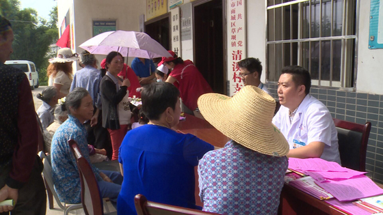 在清溪村村委會(huì),“紅旗幟脫貧巡回醫(yī)療服務(wù)隊(duì)”的醫(yī)務(wù)人員為前來(lái)就診的村民量血壓、測(cè)血糖、把脈等,并根據(jù)村民的病癥,開(kāi)據(jù)藥方免費(fèi)贈(zèng)送藥物,悉心指導(dǎo)村民如何用藥,同時(shí)耐心細(xì)致地講解各種常見(jiàn)疾病的預(yù)防知識(shí)和治療方法。
