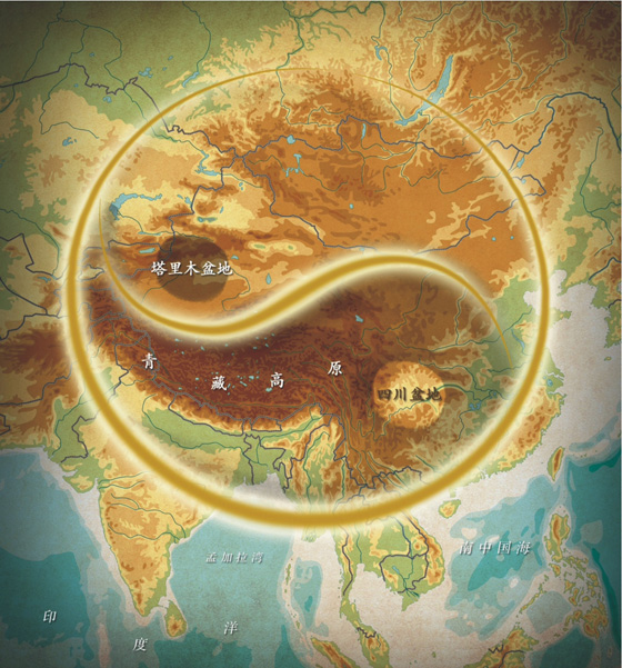 青藏高原天然“太極圖”(四川盆地與塔里木盆地是對稱點(diǎn))