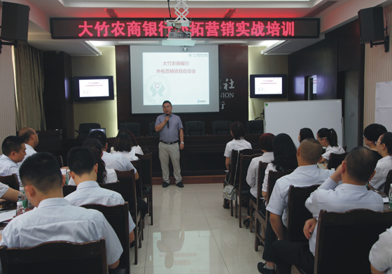 5月27-30日,大竹農(nóng)商銀行聘請(qǐng)職業(yè)培訓(xùn)學(xué)校對(duì)總行營(yíng)業(yè)部、城區(qū)支行行長(zhǎng)、客戶(hù)經(jīng)理和片區(qū)管理支行、大集鎮(zhèn)支行行長(zhǎng)開(kāi)展了為期4天的外拓營(yíng)銷(xiāo)實(shí)戰(zhàn)訓(xùn)練。在3天實(shí)戰(zhàn)中,全體學(xué)員共成功營(yíng)銷(xiāo)活期存款1376萬(wàn)元、定期存款2417萬(wàn)元、POS機(jī)81戶(hù)、貸款45戶(hù)等,成功邀請(qǐng)97家企業(yè)及商戶(hù)前來(lái)參加銀商聯(lián)盟互動(dòng)交流會(huì),并從9家贊助商處拉得包括現(xiàn)金、禮品、代金券等在內(nèi)的活動(dòng)贊助。