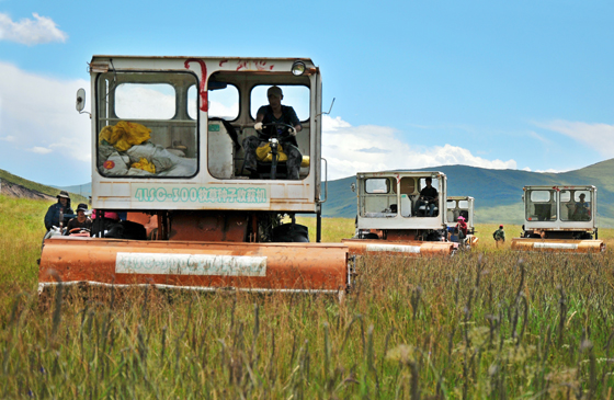 工人們在紅原縣草種基地采收草種