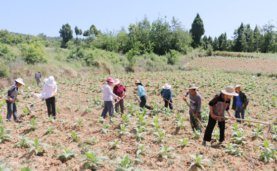 正在煙葉地理務(wù)工的當(dāng)?shù)卮迕?