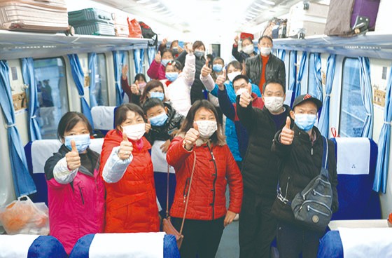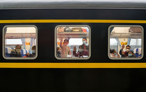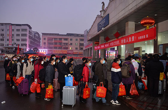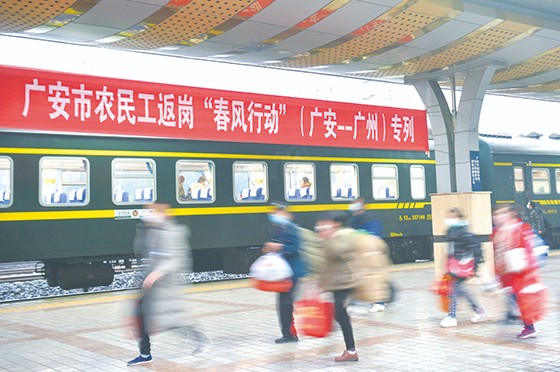 2月21日7時58分,滿載著1062名四川省廣安籍農(nóng)民工的K4201次返崗專列,從廣安火車站出發(fā)駛往廣州。據(jù)悉,廣安市對此次返崗的每一位農(nóng)民工進(jìn)行嚴(yán)格體檢并發(fā)放健康證明,同時,專列實行分散就座,并配備了口罩、消毒劑、體溫計、常用藥品等防護(hù)用品。專列抵達(dá)廣州后,廣東省人社部門將安排大巴車統(tǒng)一將務(wù)工人員從火車站直接送到工廠。