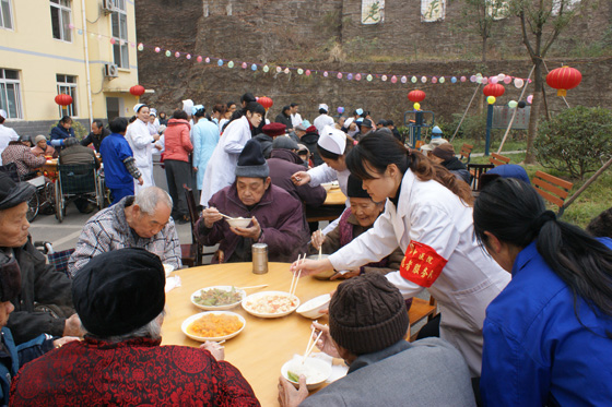 在老人養(yǎng)生方面倍加重視,定時開放書報閱覽室和棋牌活動室,免費閱覽隨時娛樂消遣,讓老人們豐富閱歷、啟發(fā)心智。有特長的老人可以盡情展示才藝,吟詩賦文,閑情逸致。在醫(yī)院內配備有戶外運動、康復鍛煉設施,托養(yǎng)老人隨時進行康復鍛煉或戶外活動,增強體質。每逢節(jié)假日,還舉行大型聯歡活動,醫(yī)護人員與老人們互動聯歡或聊天擺談,親情陪護,讓老人們感受到無比溫馨和溫暖。