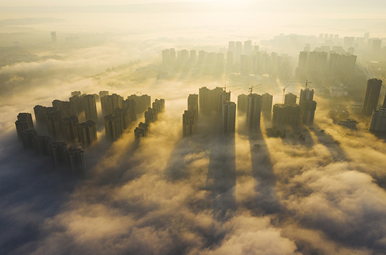 平流霧多發(fā)生在冬春時節(jié),是暖濕空氣平流到較冷的下墊面上,下部冷卻而形成的霧,能將城市中的建筑物“纏繞”其中,形成壯觀的空中樓閣、蓬萊仙境景觀。