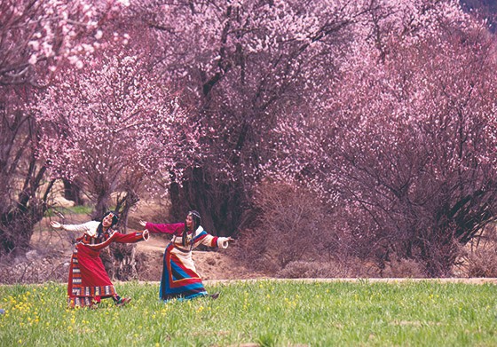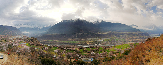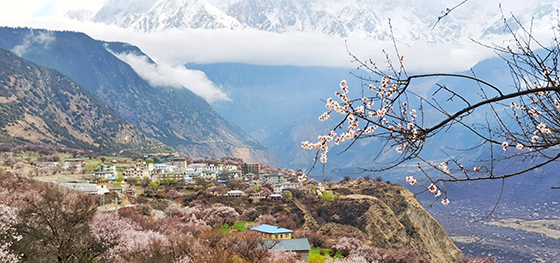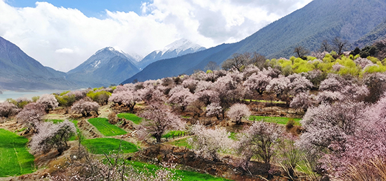 西藏林芝縣嘎拉桃花村有一片天然野生桃林,當(dāng)?shù)厝朔Q桃花溝。桃花溝三面環(huán)山,高處有水源,四周林木蔥蘢,流水順勢(shì)而下,清澈見(jiàn)底。溝內(nèi)野桃鱗次櫛比,林間鳥(niǎo)雀歡鳴。每年3-4月間,雪山之下,漫山遍野的桃花綿延至河谷。粉紅的桃花如醉霞緋云爭(zhēng)相斗艷,與遠(yuǎn)方連綿的潔白雪峰、碧綠的青稞田、古樸的藏族民居、灣灣的河流,構(gòu)成了仙境般的雪域桃源盛景,令人心曠神怡,流連忘返。圖為2021年4月,林芝縣嘎拉桃花村桃花溝盛景一覽。