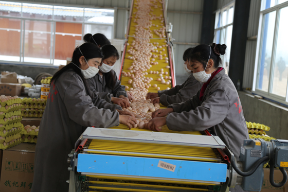 龍門鄉(xiāng)錢記雞業(yè)公司的工人們正在輸?shù)熬€上忙碌