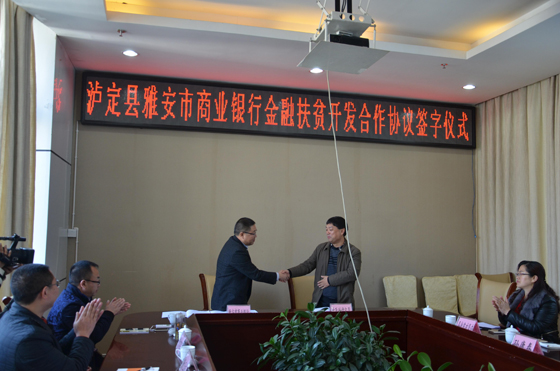 2016年3月16日,雅安商行正式與瀘定縣政府簽署《金融扶貧開發(fā)合作協(xié)議》,雙方議定,以扶貧開發(fā)項目為載體,以“造血式”的扶貧方式,為瀘定縣量身打造金融精準扶貧方案。