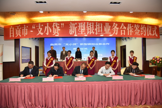 自貢市“支小貸”新型銀擔業(yè)務合作簽約現(xiàn)場