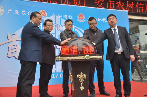 2017年3月29日,由廣安市農(nóng)村信用社與廣安市國(guó)稅局、廣安市地稅局三家單位聯(lián)合推出的“蜀信·銀稅卡”正式啟用。由此,廣安農(nóng)信成為四川省銀行業(yè)中設(shè)立24小時(shí)銀稅自助辦稅點(diǎn)的首個(gè)機(jī)構(gòu)。
